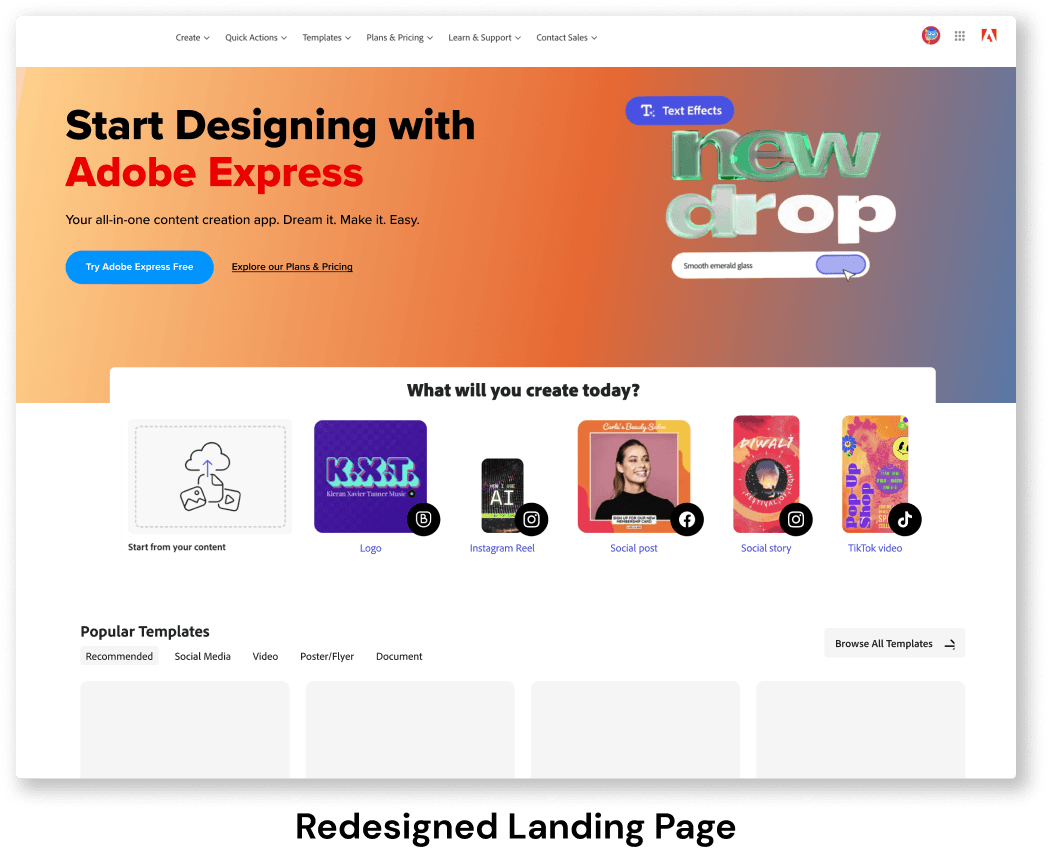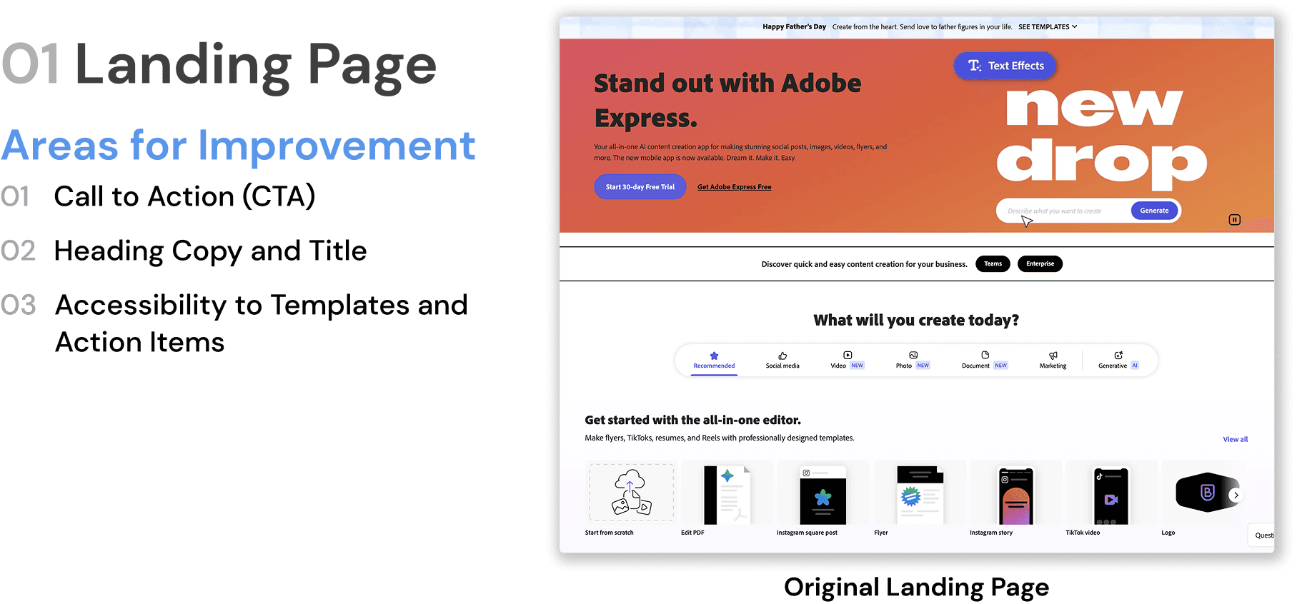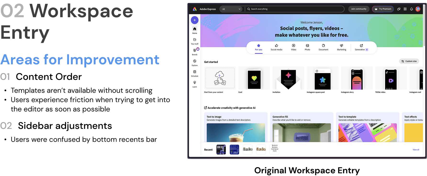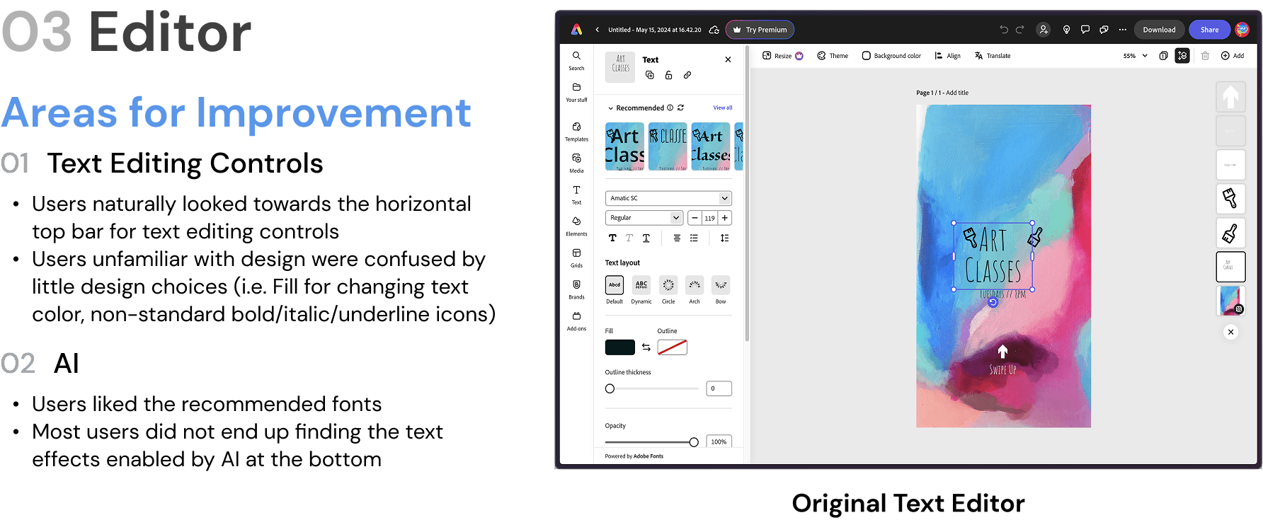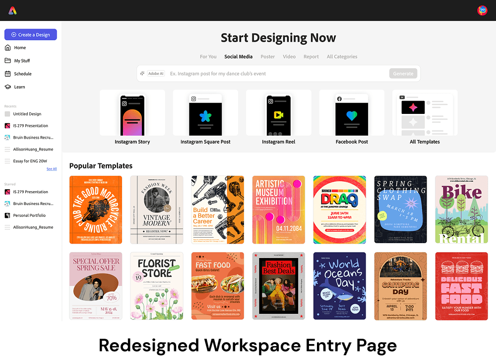 I worked closely with the Adobe product team to increase user delight in the Adobe Express platform for an anticipated new version launch, conducting market research and analyzing student sentiments on content creation to ultimately inform a design refresh.
